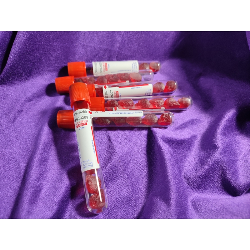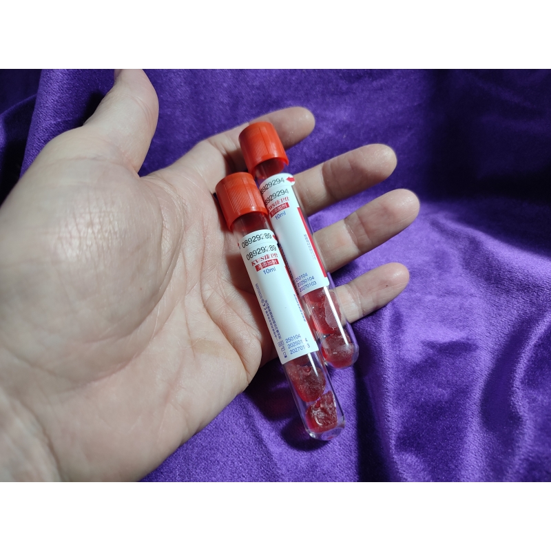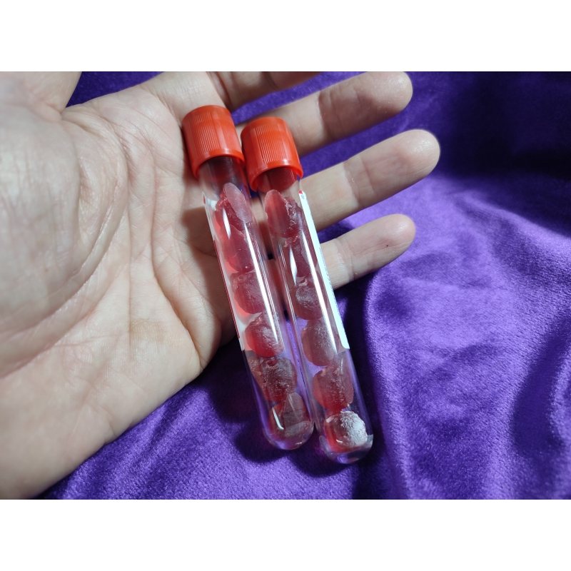 Estos dos viales de sangre, vienen en su interior con Tokens en forma de calavera de color rojo, como la sangre.